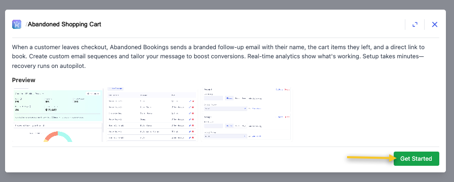 In ACME Backoffice > Apps > Abandoned Shopping Cart > Click Get Started