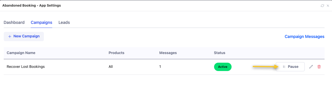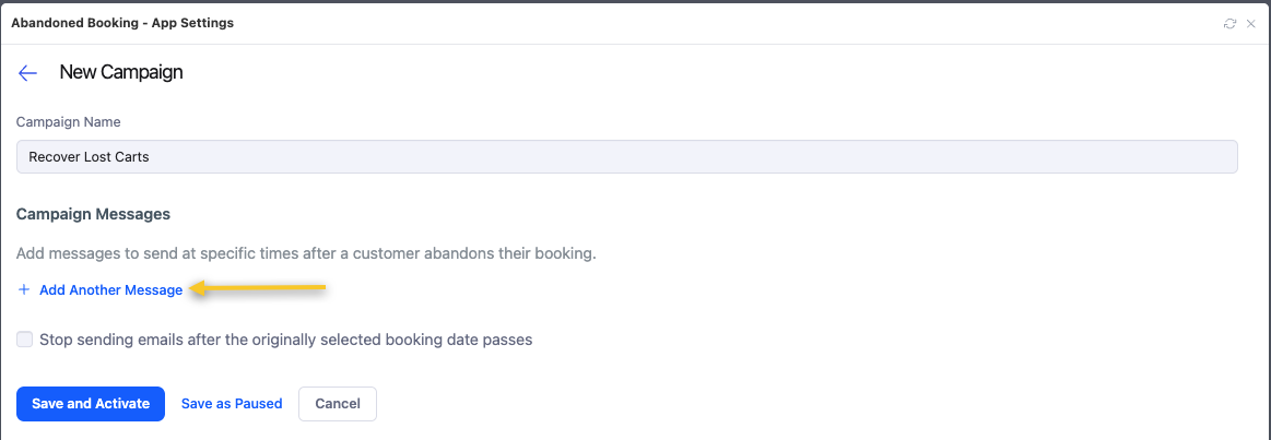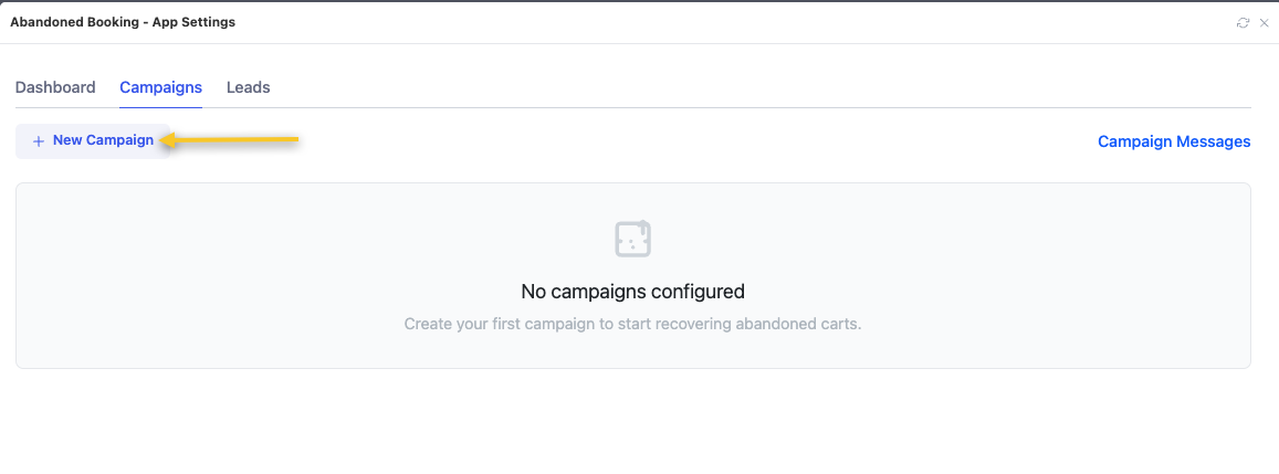 Create your Campaign Messages, which are the emails that will be sent to your customers who abandoned their bookings. Click Campaign Messages