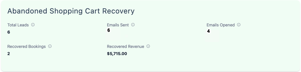 - Note - a customer does not need to complete their booking from the email link itself to be considered a “conversion” as long as they complete a booking within 7 days of their original abandonment and enter in the same contact email during purchase